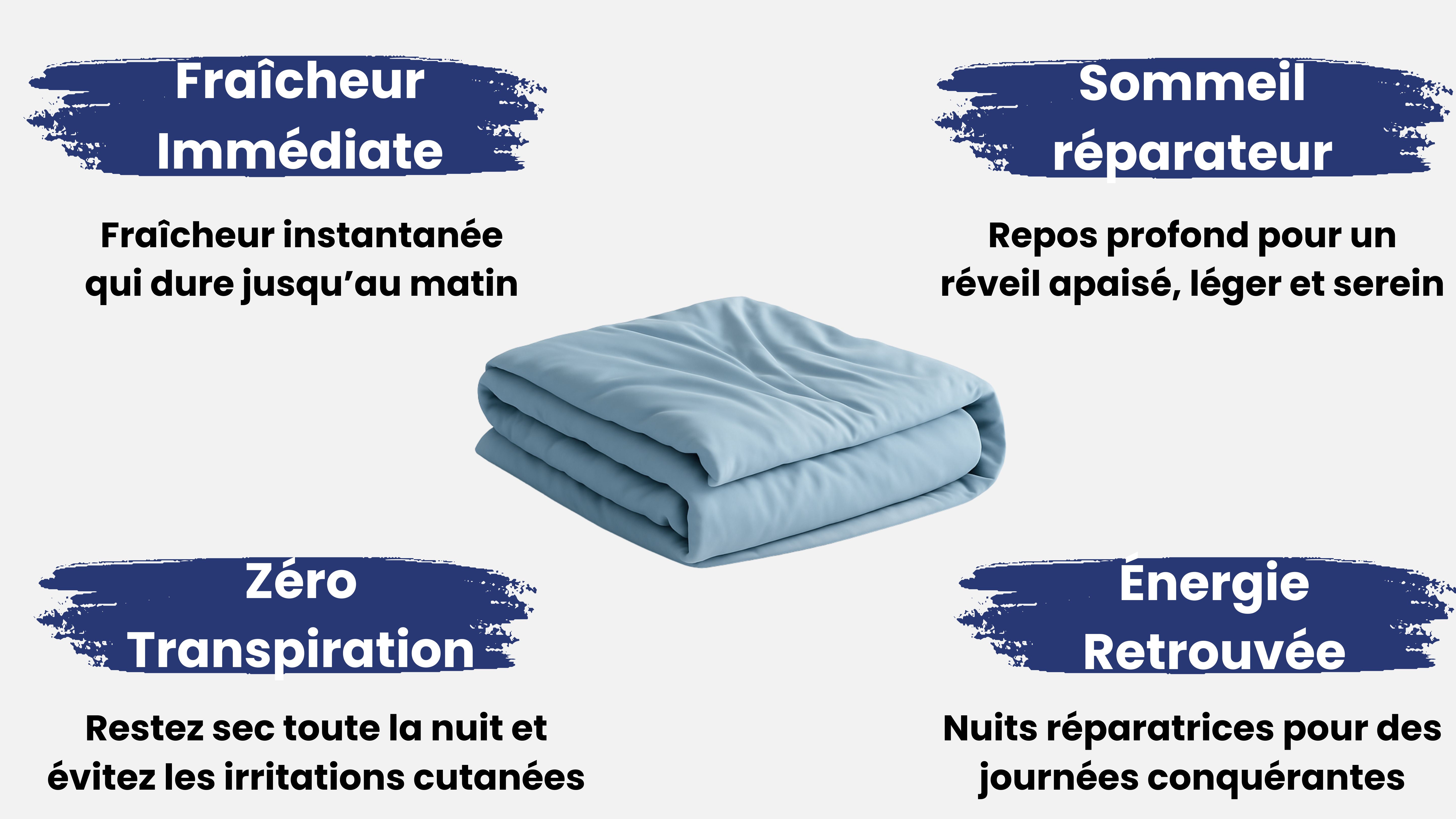 Oui. Contrairement à un ventilateur qui brasse de l’air chaud, Vellunia™ maintient une sensation de fraîcheur constante et réduit les sueurs nocturnes, même en pleine canicule.