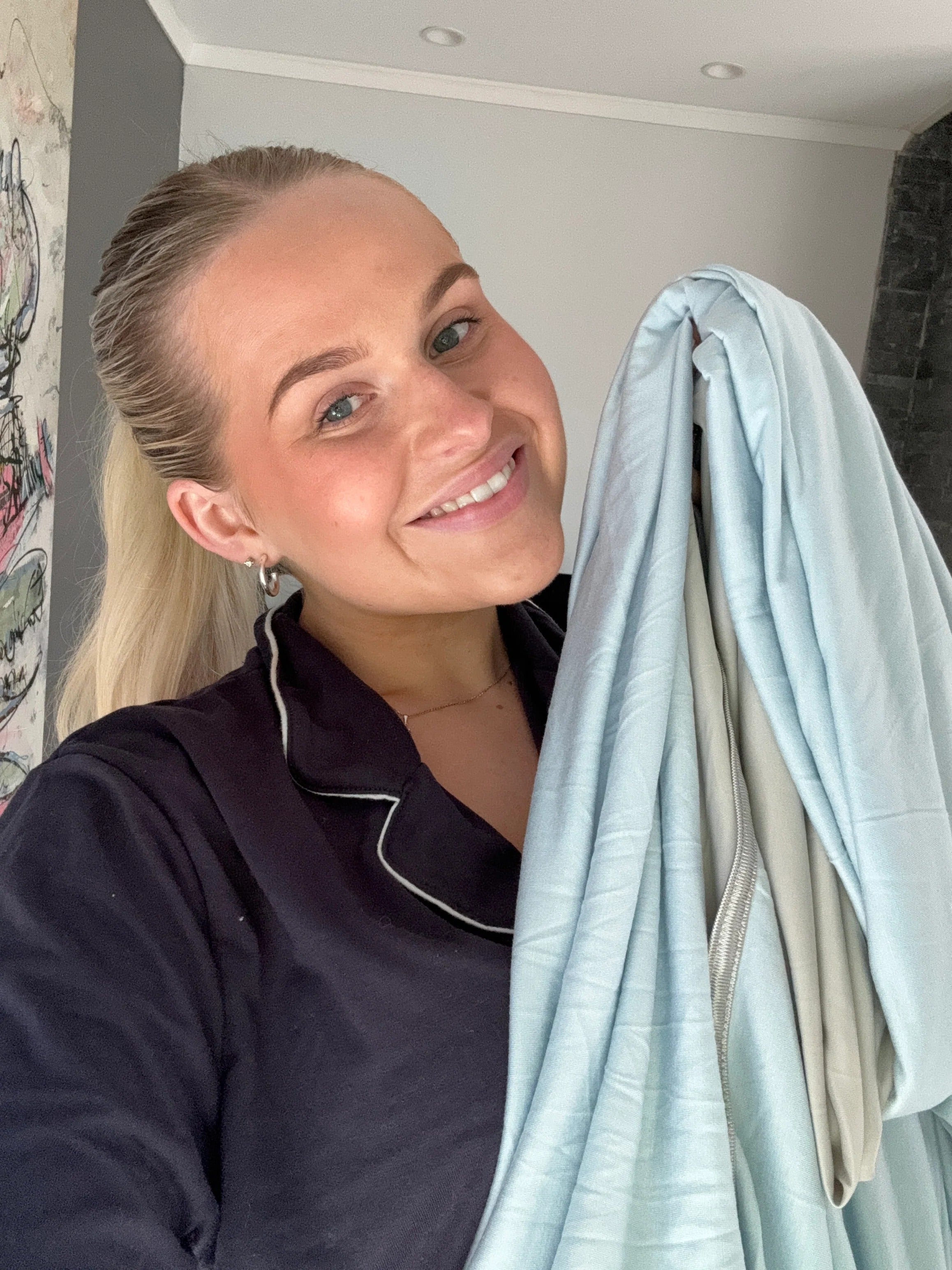 La housse est lavable en machine avec un programme délicat à 30 °C. Séchez-la en la suspendant puis repassez-la légèrement pour conserver sa douceur et sa tenue.
